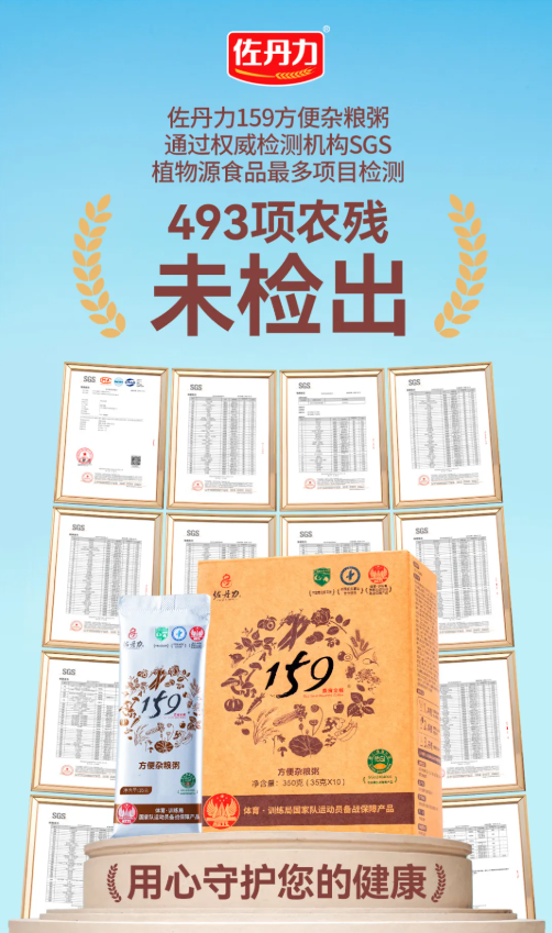 民以食为天,食以安为先!佐丹力159方便杂粮粥通过权威检测机构SGS植物源食品最多项检测!493项农残均为未检出!