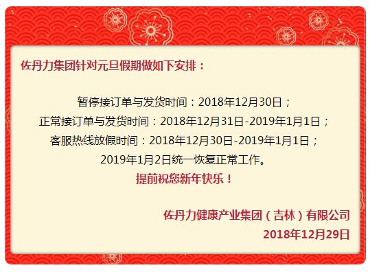 2019年元旦期间接订单、发货及客服热线安排
