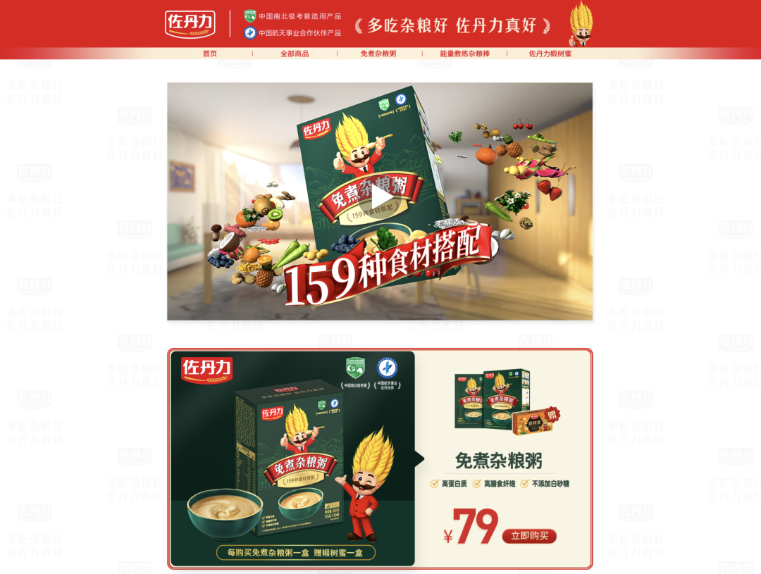 1、佐丹力免煮杂粮粥:为了满足广大消费者需求,在159素食全餐产品配方不变的情况下进行优化,降低配料中甜度较高的水果比例,血糖生成指数(GI)将会降低。升级后的免煮杂粮粥,充分考虑到每一位用户的食用需求,每盒免煮杂粮粥赠送价值19.9元的长白山天然椴树蜜1盒,可根据个人口感以及实际情况搭配食用。