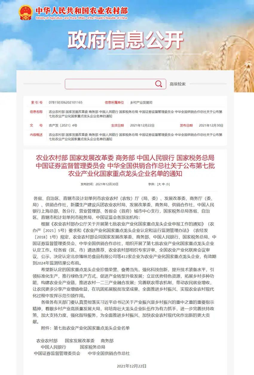 佐丹力健康产业集团(吉林)有限公司荣膺第七批农业产业化国家重点龙头企业
